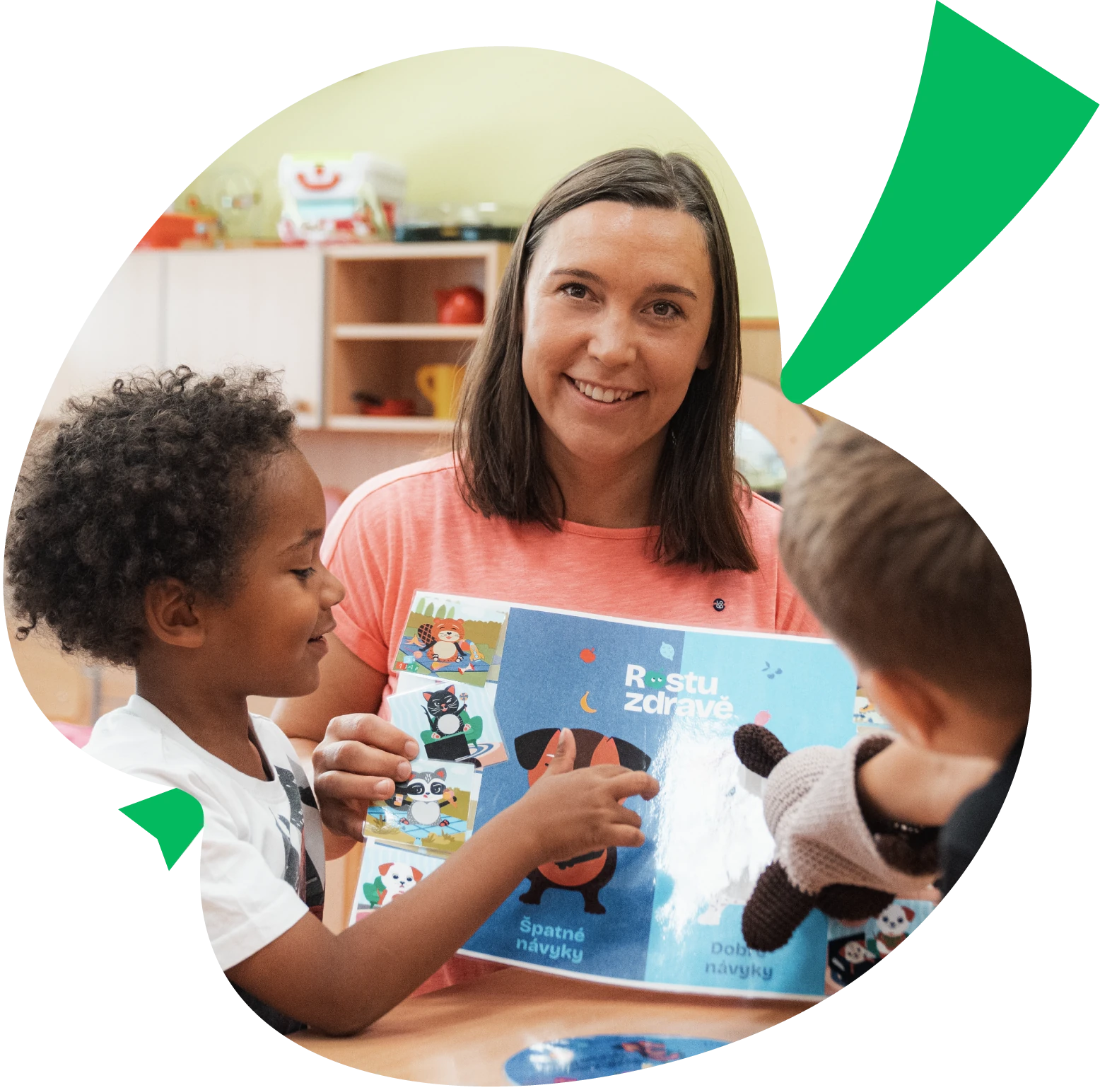Prostřednictvím hry a maňásků se učí, proč je ovoce, zelenina a pestrá strava důležitá pro jejich zdraví a energii.